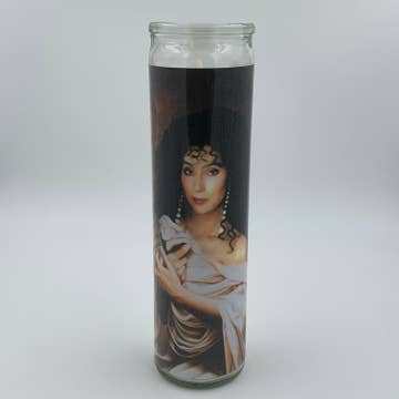 Dixie Carter Celebrity Prayer Candle - Designing Women Saint Julia Sugarbaker always spoke her mind and will remind you to do the same with her sophisticated candle. Saint Celebrity Prayer Candle. White wax. 8 Inches Tall. Glass Container. High Quality Gloss Vinyl Label.
