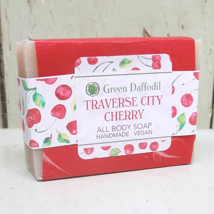 Our hand poured Traverse City Cherry soy lotion is very cherry and will remind you of the Northern Michigan. It is lightweight, non-greasy, super moisturizing, absorbs quickly, and vegan. We scent our lotions with the same body safe oils that we use with all our of products. This mini size is perfect for your purse, travel, favors and more. We have 4 oz tester bottles to help with sales! Check out the cute cherry label! Product Highlights: Size: 2 oz Amber BFA Free Plastic bottle with black flip top. Handmade in Michigan Ingredients:Purified water,extra cold-pressed soy lipids,soy amino acids, stearic acid, cetyl palmitate, cetearyl-alcohol-ceteareth-20, glycerin, extracts of kone nut, lemon grass, horse chestnut and witch hazel, isopropyl myristate, carbomer, triethanolamine, propylene glycol, diazolidinyl urea, phthalate-free fragrance oils. Suggested Tags - Fruity, All Body Lotion, Travel, Northern Michigan, Festival, Orchard