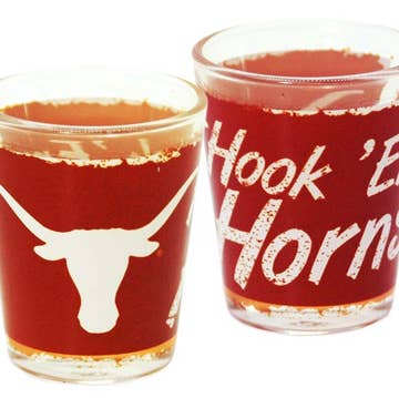 These shot glasses are a great keepsake or gift for the Texas fan in your life! Cheers to good friends, family, and stylish glassware. * Size: 1.95in x 1.9in d x and 2.3in h * 1.5-ounce capacity (1.5 oz) * Classic shot glass shape * Heavy base for a solid foundation * Hand wash * DTF production method