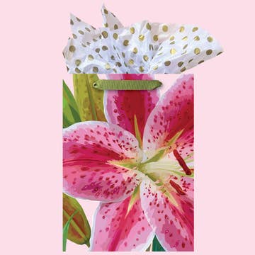 LARGE Floral Gift Bag | Pink Tiger Lilies with Hummingbird