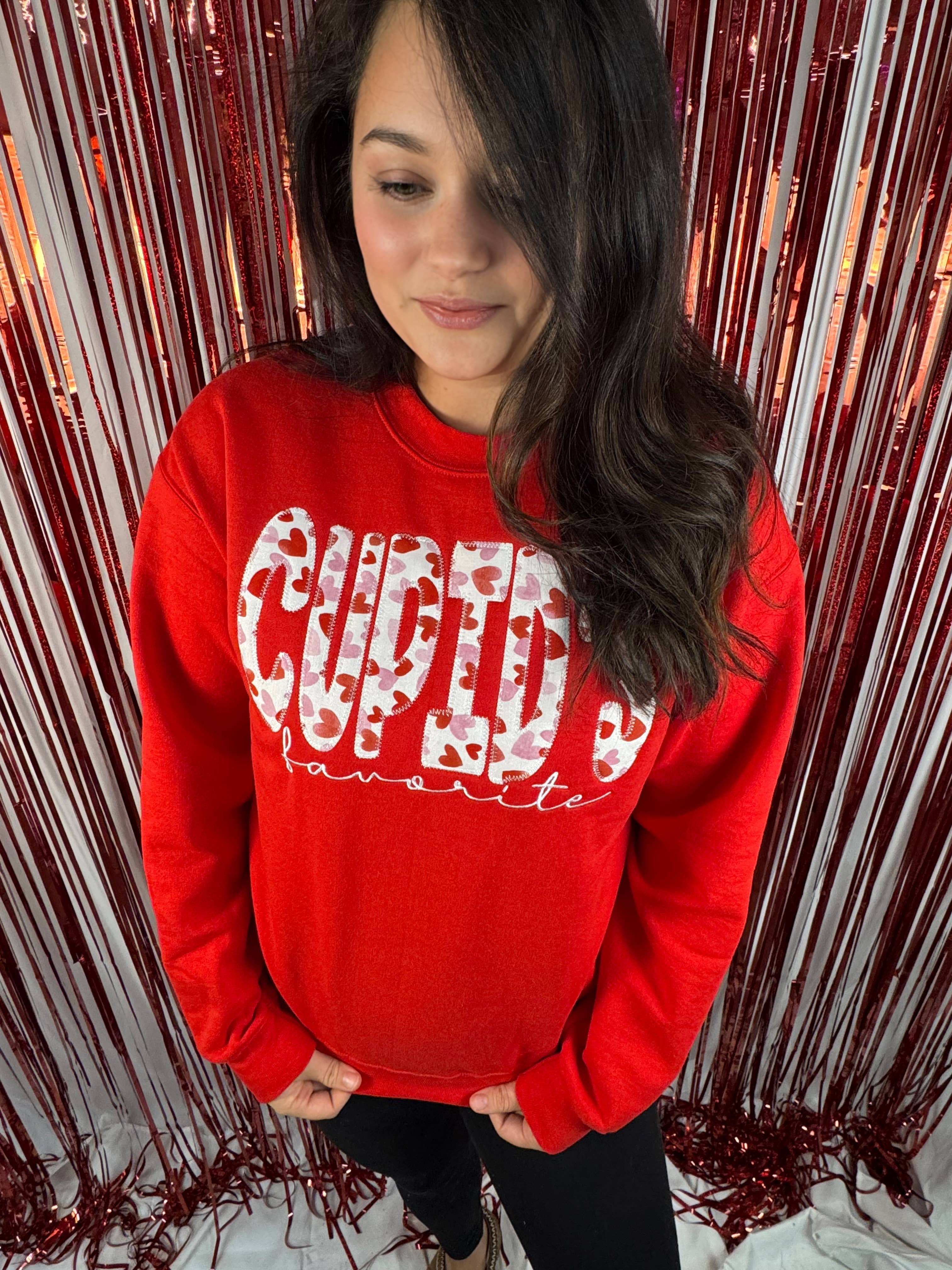 Cupids Archery screen printed in red on your choice of a Bella and Canvas tee or a Jerzees brand crewneck sweatshirt. Super cute for the holiday, perfect for any teacher too! Soft and comfortable with a unisex fit. Handmade in my small boutique in Easley, SC where I am a wife, mom of 4, and teacher. Thank you for supporting my small business!