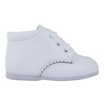 Classic Style Toddler Walkers This Classic Walker takes high-end fashion to an all new level with a vintage twist. The style has a traditional brogueing on the toebox and white contrast stitching at the midsole. This shoe is the perfect combination of prim, proper, and toddler fashion. If that sounds like your girl/boy, this would be the shoe your cutie would love. Details -Full-Grain Leather Texture -Refined Velcro Closure -Mesh combines with calf leather upper + trim -Dbl Stitch outsole + Ankle padding -Dual padding for arch, ankle and foot support -Non-Skid grain bottom sole