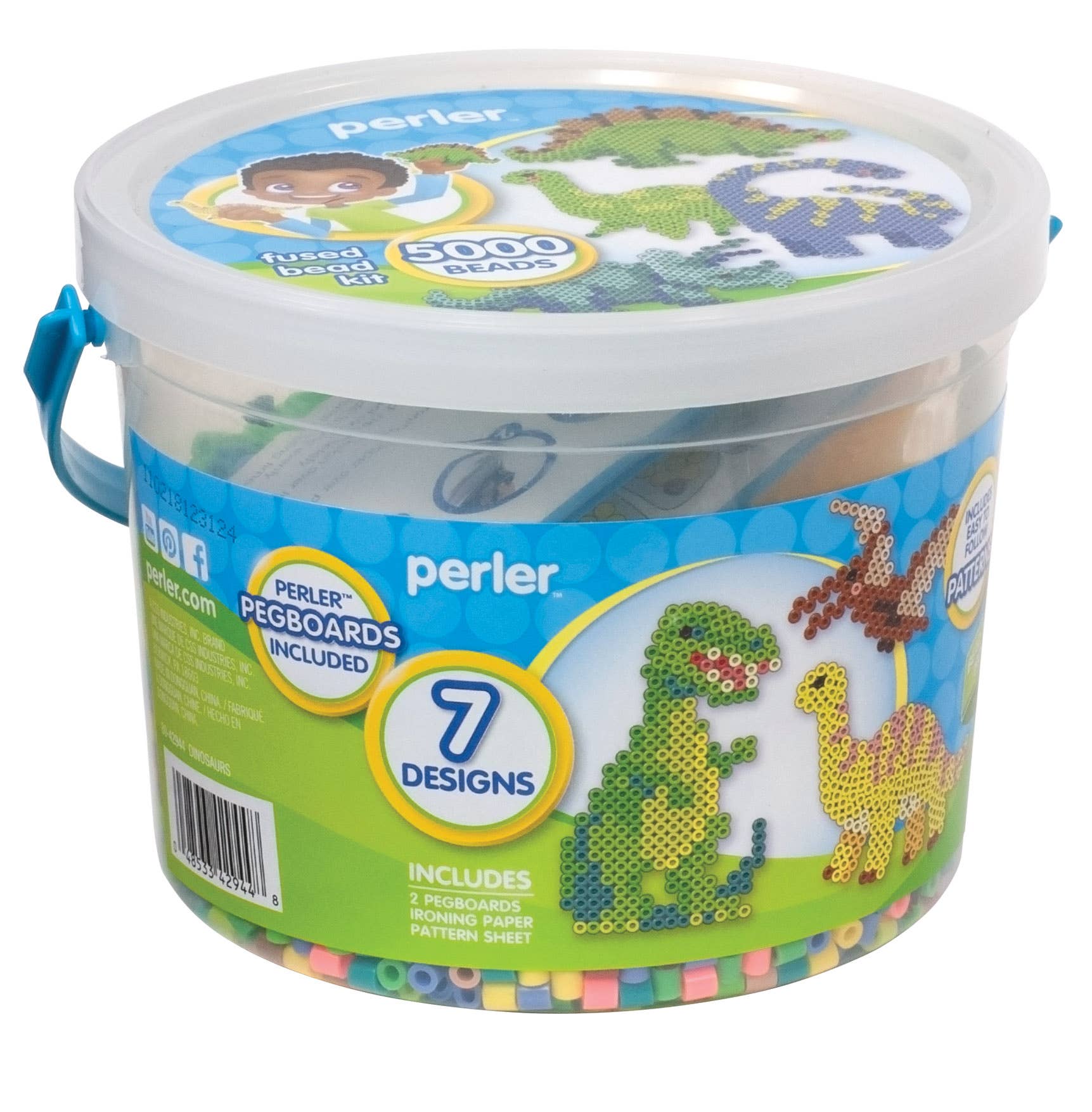 Bead Mania Large Bucket includes 8,500 beads, 3 pegboards, ironing paper and instructions. Ages 6+