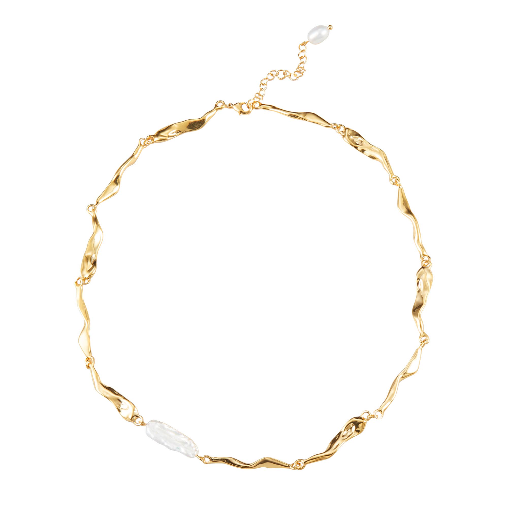 Wholesale Gold Shell Pearl Necklace with Gem-Encrusted Carabiner Lock