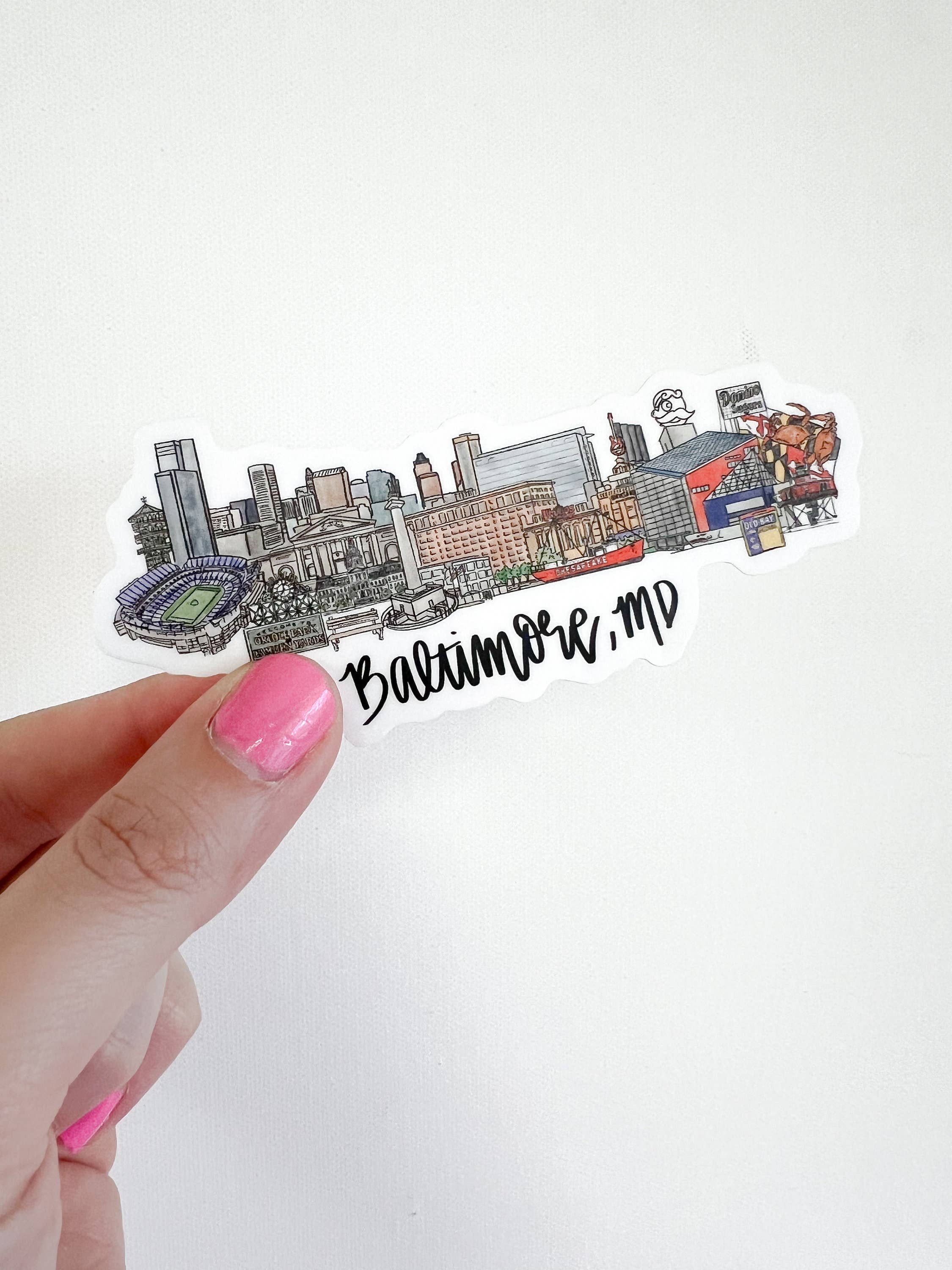 This is a beautiful hand drawn skyline sticker. The sticker depicts the Ocean City Maryland boardwalk and several popular locations. Each sticker is approximately 5inx2in and is dishwasher/sun safe. Each sticker comes individually packaged and ready to display.