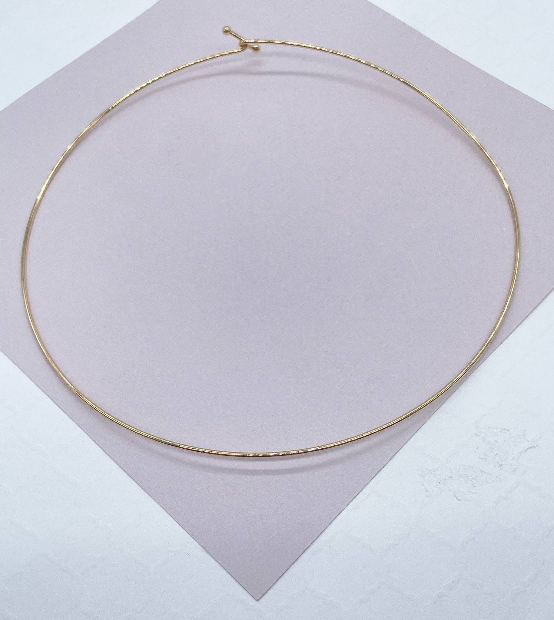18k GF Thin Stick Choker Necklace 16" length + 2" extension Our Etsy store was developed to help you find the most unique styles of modern designs, always looking for elegance and market trends. Here you will find ways to better make your jewelry through quality, seeking harmony, exclusivity and impeccable finish. Find many more styles in our Milie Jewelry Etsy Store. https://www.etsy.com/shop/miliejewelry You can choose from unique styles of earrings, necklaces, pendants and charms, bracelets, anklets, rings, chokers, and many others. If you don't find a specific style here, don't hesitate to contact us, we also customize any style specially developed for your needs. MILIE JEWELRY 18K GF GF jewelry is an excellent option for those who wish to have a product of exceptional quality, beautiful and anti-allergenic, but with prices far lower than solid gold jewelry. Contains a much thicker layer of actual karat gold than "plated" gold and therefore lasts much longer than plated gold. The core of the piece is jeweler's brass while the outer core is a thick layer of heat & pressure-bonded solid gold. Our products are free of harmful chemicals such as nickel, cadmium or lead. We produce our jewelry according to the standards of quality using fine 18k pure gold, thus ensuring the quality of the GF jewelry. INSTRUCTIONS HOW TO CARE OF YOUR MILIE JEWELRY Our jewels are delicate and need care so they are always perfect. 1. Avoid contact with chemicals and cleaning products in general. The most indicated that you remove your part when handling these products. 2. Do not apply perfume when using the piece Perfume, if applied directly on the piece, can, over time, end up damaging the jewelry due to the presence of alcohol in its composition. Therefore, it is best to apply the product and only after a few minutes put on your favorite jewelry. 3. Clean with mild soap and water, as cleaning products can damage the piece, ideally it is washed with mild soap and pure water. This type of cleaning is recommended for everyday use. And it works well in eliminating fat. Don't forget to dry well, in which case you can use a hair dryer. =) 4. Buff with a flannel to safely polish your pieces. A possible oxidation darkening caused by uric acid, chemicals or strong light can be easily removed with the help of a clean cloth. This is a great ally for quick and efficient cleaning, so always keep one close; 5. Store with care When storing your jewelry, always choose a clean and dry place. Therefore, it is important to avoid exaggerated exposure to the sun, humidity, light, contact with scented materials and dyed materials. We would like to inform a very important matter about broken and used items. We do not accept exchange or refund for this condition.