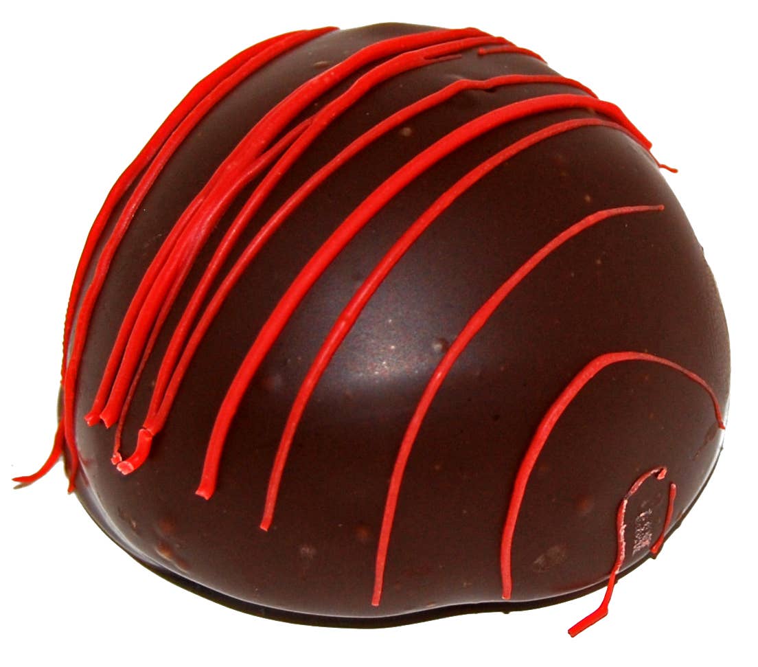 Our #1 selling truffle, Dark on Dark, has a smooth and creamy dark chocolate honey center smothered in dark chocolate and just for kicks, we decorate it with dark chocolate. Dark on Dark is the NNFA People’s Choice Award winner for 2003. As it is our best selling truffle, you can find it in a variety of gift packs also. Try our QBee Sampler, you will find it. How about our top selling gift item, the mini truffle box? Yup, it’s there. Try it, you will like it, if you like dark chocolate that is! This truffle started as Dark Pecan, but that didn’t sell very well. They went and took the pecans out of it and Eureka! All truffles come individually wrapped, with UPC and ingredients.