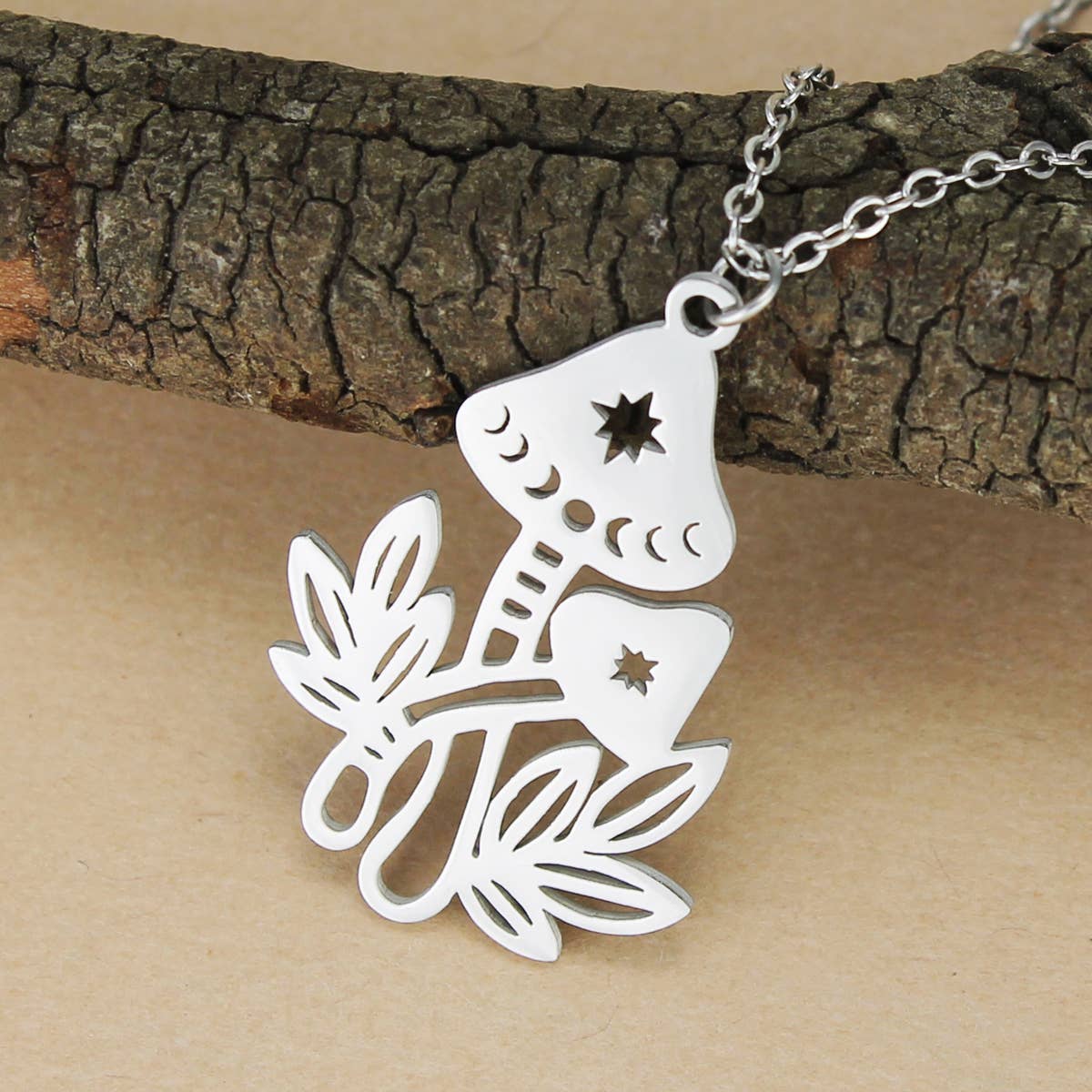SKU: MN-MUSH-4 Made in United States Color: Silver Material: Rhodium and Stainless Steel Style: Artistic and Mystical Theme: Nature Weight: 8.5 g (0.3 oz) Product Materials: Plastic-free Packaging: Plastic-free, Recyclable, and Recycled Production: Low-impact transport