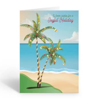 Shop our Customizable Warm Wishes Christmas Card card as a Box Set Customize this card to highlight your state, or city! The Box Set Features 6 of our A2 Card that measures 4.25" x 5.5" closed. Each card comes with a fitted, Kraft paper made of recycled paper envelope for easy sending. These card are printed and designed in Florida on high quality bright white paper. The 6 cards will be packed in a plastic free box. These cards are not for individual sale. Retailers are permitted to resell 25 Sweetpeas products in their own brick and mortar store or on their own independent website. Retailers are not permitted to resell 25 Sweetpeas products on Etsy, Facebook Marketplace, Mercari, Poshmark, Amazon or other similar marketplaces. All designs and products images are ©2025 25 Sweetpeas. Coastal Christmas Card, Beach Christmas Card, Tropical Christmas Card, Beachy Christmas, Coastal Christmas, Palm Tree Christmas
