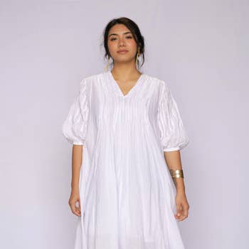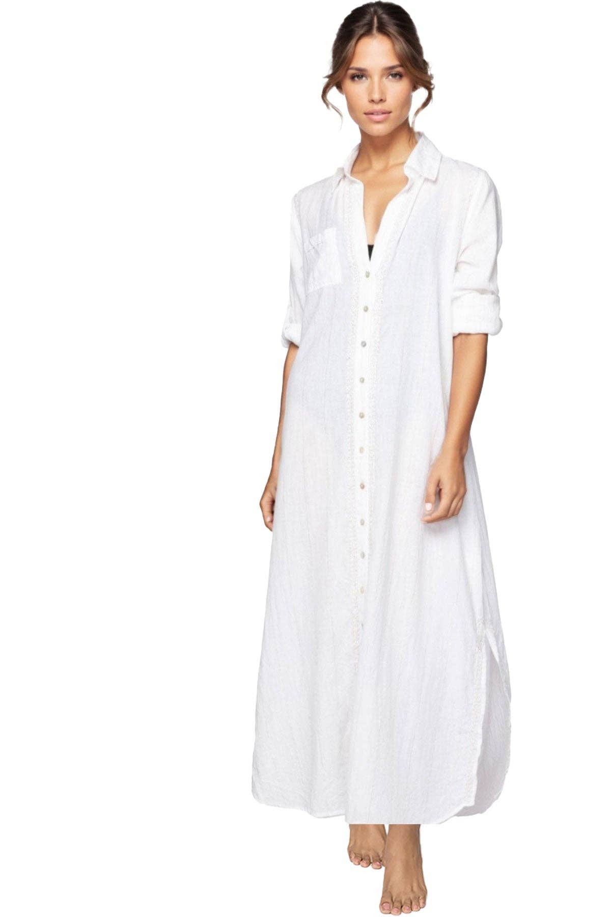 Graceful, flowing, and endlessly wearable — the Olivia Maxi Dress is your go-to for effortless elegance. Crafted from soft, breathable cotton and ethically handmade under fair trade standards, this dress offers a flattering drape with a layered hemline that adds movement and charm to every step. Why You’ll Love It: * Soft Cotton Comfort: Lightweight, breathable fabric feels gentle on the skin — ideal for all-day wear. * Elegant Layered Hemline: The asymmetrical cut creates graceful flow and dimension. * Classic Design Details: A buttoned neckline and long sleeves add timeless sophistication. * Versatile Styling: Roll-up sleeves and a relaxed fit make it easy to dress up or down. Available Sizes: S/M, M/L, L/XL Colors: Teal, Natural, Burgundy, Black Fabric: 100% cotton Style Tip: Pair with ankle boots and a wide-brim hat for a boho-chic look, or add a belt and jewelry for an evening out.