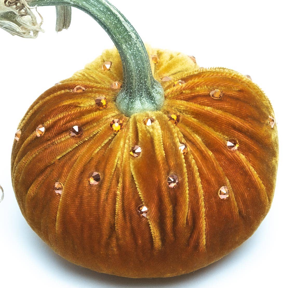 Hot Skwash silk velvet pumpkins are handmade in Oregon by one of our trained artisans. Each piece is hand cut and sewn to order and finished with a natural stem. Our stems are specially curated varieties to ensure beautiful shapes and quality. They are all signed in gold with Daria's signature giving it our authentic Hot Skwash touch.
