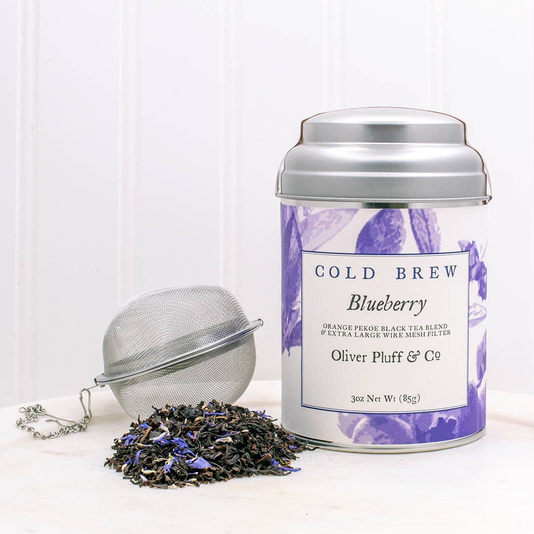 Hibiscus Petals Cold Brew - Naturally Caffeine-Free, A Tart Cup Description: Tea. Water. Pitcher. Cold. Cold Brew by Oliver Pluff & Company- refreshing iced teas easily brewed by steeping in cold water. Ingredients: Hibiscus blossoms. Size/Type: 3oz Hibiscus tea in Cold Brew Tea Tin comes complete with a large wire mesh tea brewing ball. Shelf Life: 3 Years Cold Brewing Tips For a Half-Gallon Brew: 1. Fill a pitcher with a half-gallon of cold, clean spring water. 2. Fill the tea filter with 4 tablespoons of tea. 3. Close the tea filter, then add to pitcher. 4. Steep the tea overnight in the refrigerator. 5. Remove tea filter, and serve tea over ice. Ponder Good Times. ***Our hibiscus was processed in a facility with peanuts. May contain peanut shell remnants. Hand Packaged by Oliver Pluff & Co. in Charleston, South Carolina