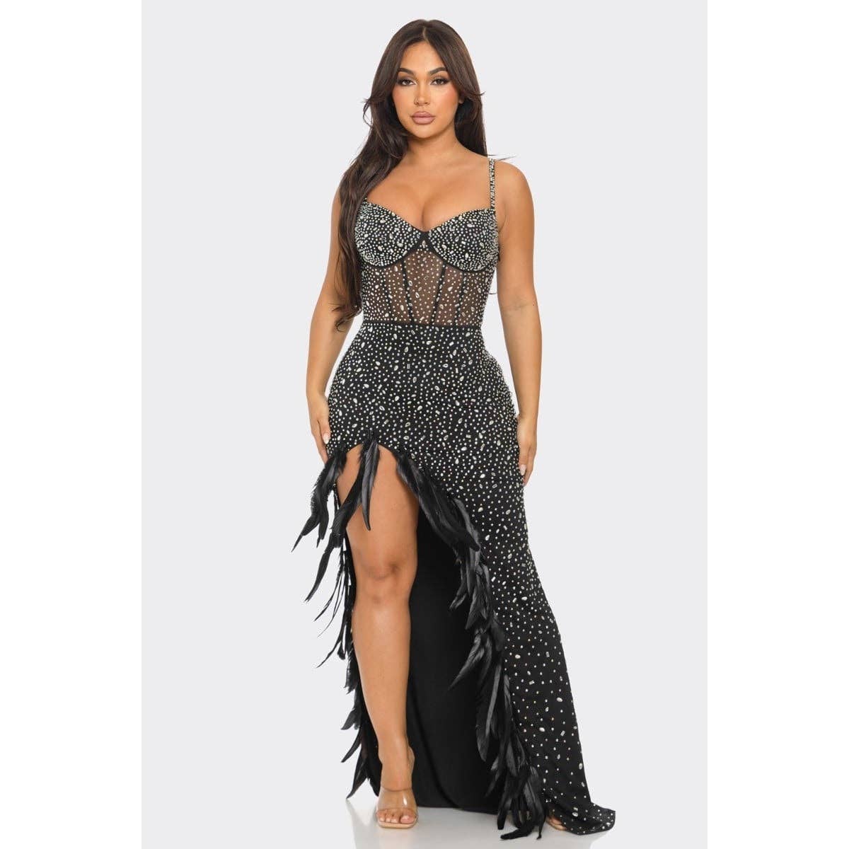 Western Fashion presents the 7194 Rhinestone Mesh Dress, a perfect blend of classic aesthetic and modern design. This long-sleeved dress features a sophisticated mock neck and is adorned with sparkling rhinestones, adding a touch of glamour to your night out. As a family business since 1985, we are committed to providing high-quality fashion pieces that elevate your style. This dress is not just a garment, it's a statement of elegance and sophistication. Step out in confidence with Western Fashion.