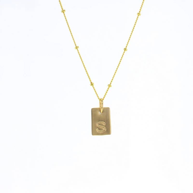 Our best selling letter necklace! This small letter necklace makes the perfect layering piece. • 3/8"" pendant • shiny finish • 4mm jump-ring • available in sterling silver & 14k gold-filled • available in every letter of the alphabet This piece was designed by Courtney Legenhausen. Meet our designers.