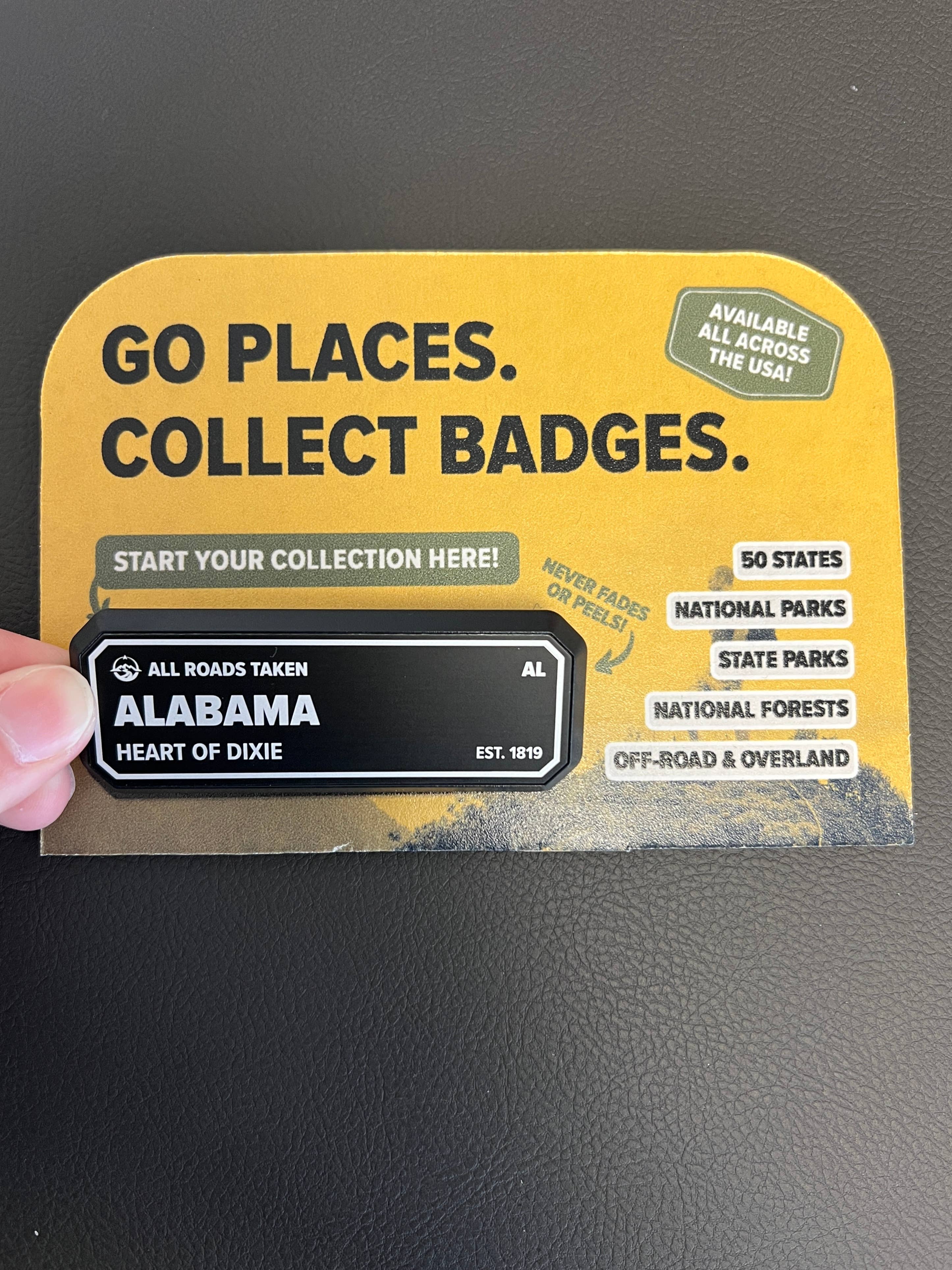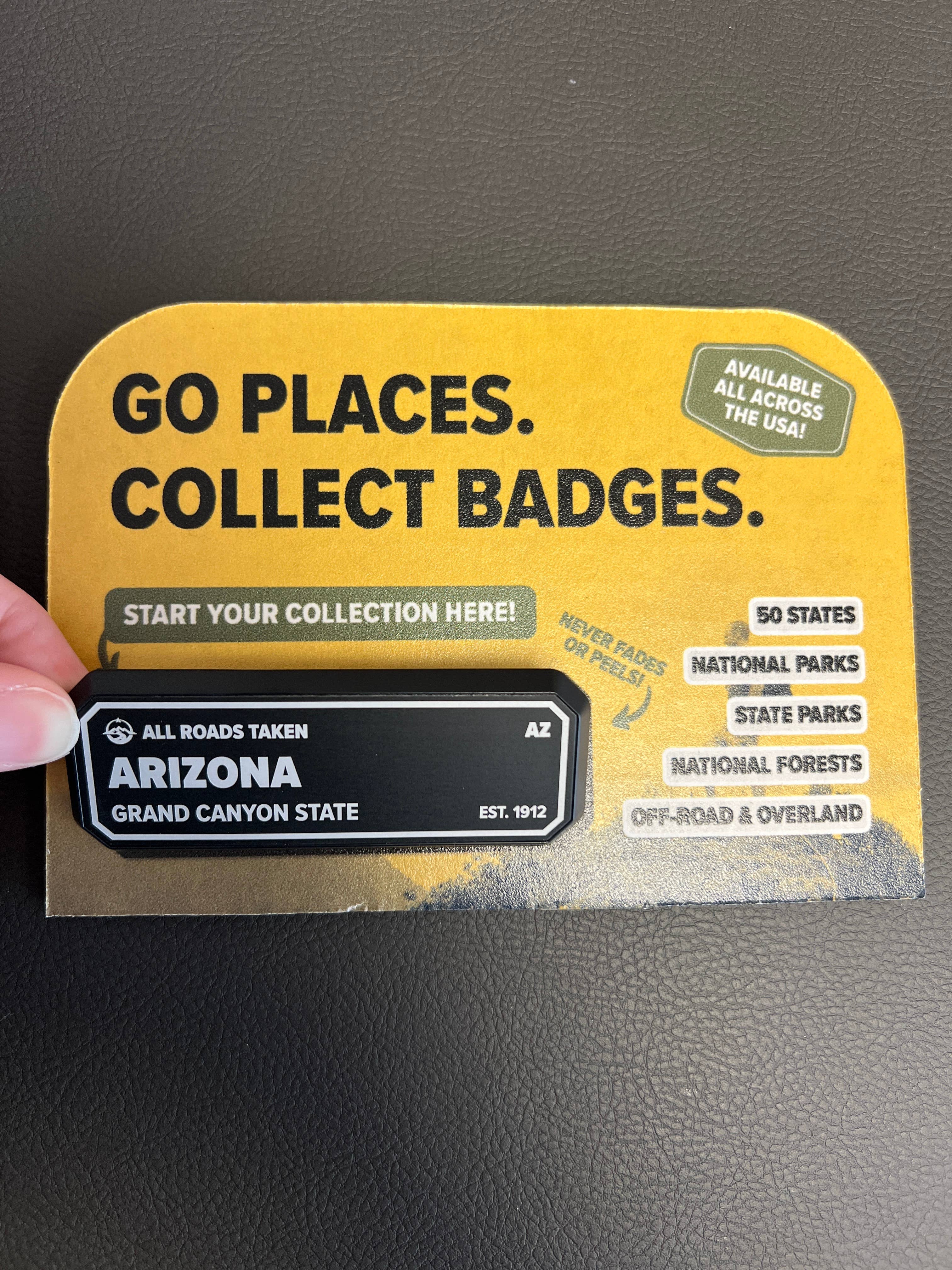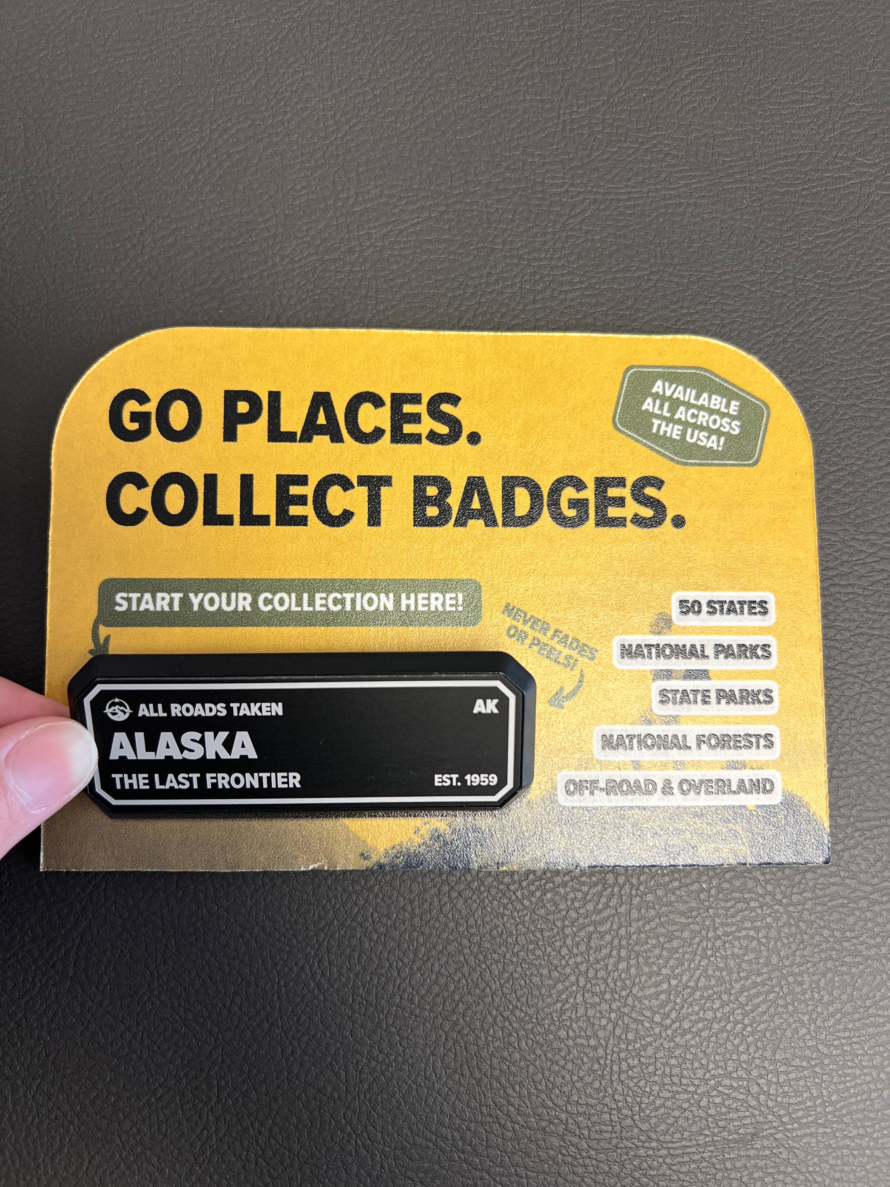 We’ve created a premium alternative to a sticker, made tough enough for the journey and classy enough to meet the family. What to know about the Adventure Badge: - 100% Made in the USA - Each badge is custom made in Springfield, MO - Every badge is lined with 3M adhesive that is designed to protect automotive paint. - Designed to last 20+ years. Check out our other collections: - US States - National Parks