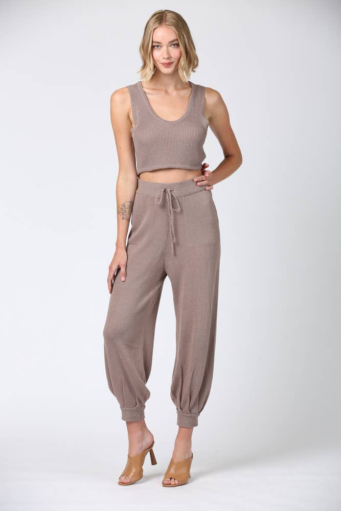 Ladies Solid Color Crop Top and Pants Set SKST379
