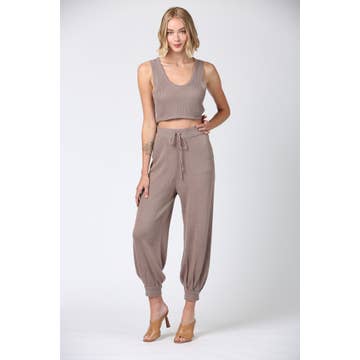 Wholesale Ladies Solid Color Crop Top and Pants Set SKST379