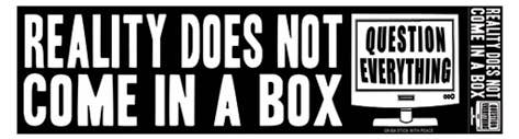 Question technology bumper sticker white on blue this sticker decal you may have seen this artwork at your last show or festival on t-shirts, tapestries, flags, etc. Stick with peace love & happiness!