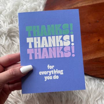 SKU: th57 Made in United States Card Count: 6 Color: Blue Finish: Matte Is Set: Set Occasion Theme: Everyday and Thank You Recipient: Everyone Season: Year-Round Special Feature: Blank Theme: Gratitude Tone: Cute Product Language: English Product Materials: Recycled Packaging: Recycled Production: Ethically sourced