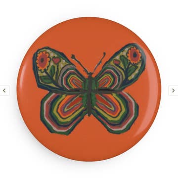 This rigid high-quality button style magnet measures 2.5 x 3.5 inches. This item is the fridge magnet version. The magnets are bulk packed. This design is also available as a print and greeting card. All items made in the USA.