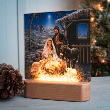 THE SAINTS COLLECTION Lady of Grace Night Light with Automatic Sensor. Standard wall outlet on the rear of the light allows secure connection to a wall. The daylight sensor automatically turns off the night light when it is not needed and turns it on when other lights are turned off.