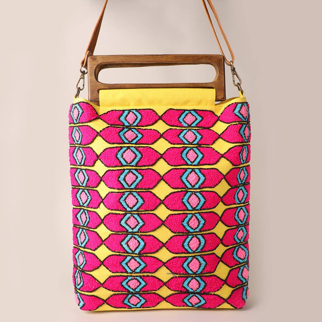 Magenta Gold Tree Leather Bottom Medium Tote