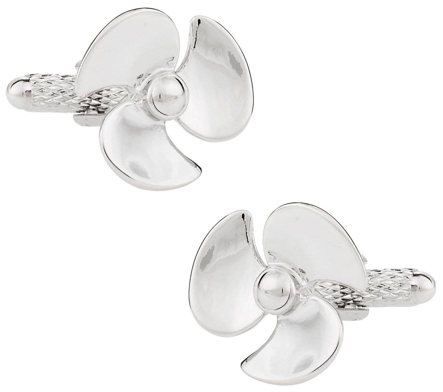 Rhodium-plated propeller cufflinks. .5"x .5" x 1". Model # J183
