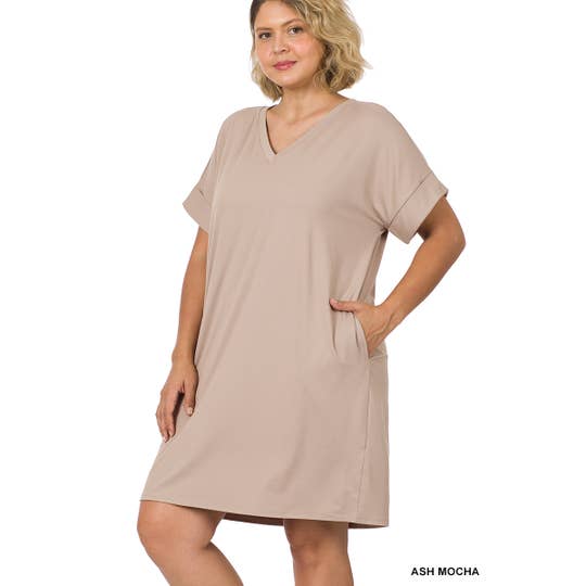 Classic oversized square dress, detailed with a Vneckline, hidden hip side pockets, and a fold panel on the back. Can be worn at a mini dress or tunic with skinny bottoms. - Oversized silhouette - One size - Designed in Austin | Made in Los Angeles