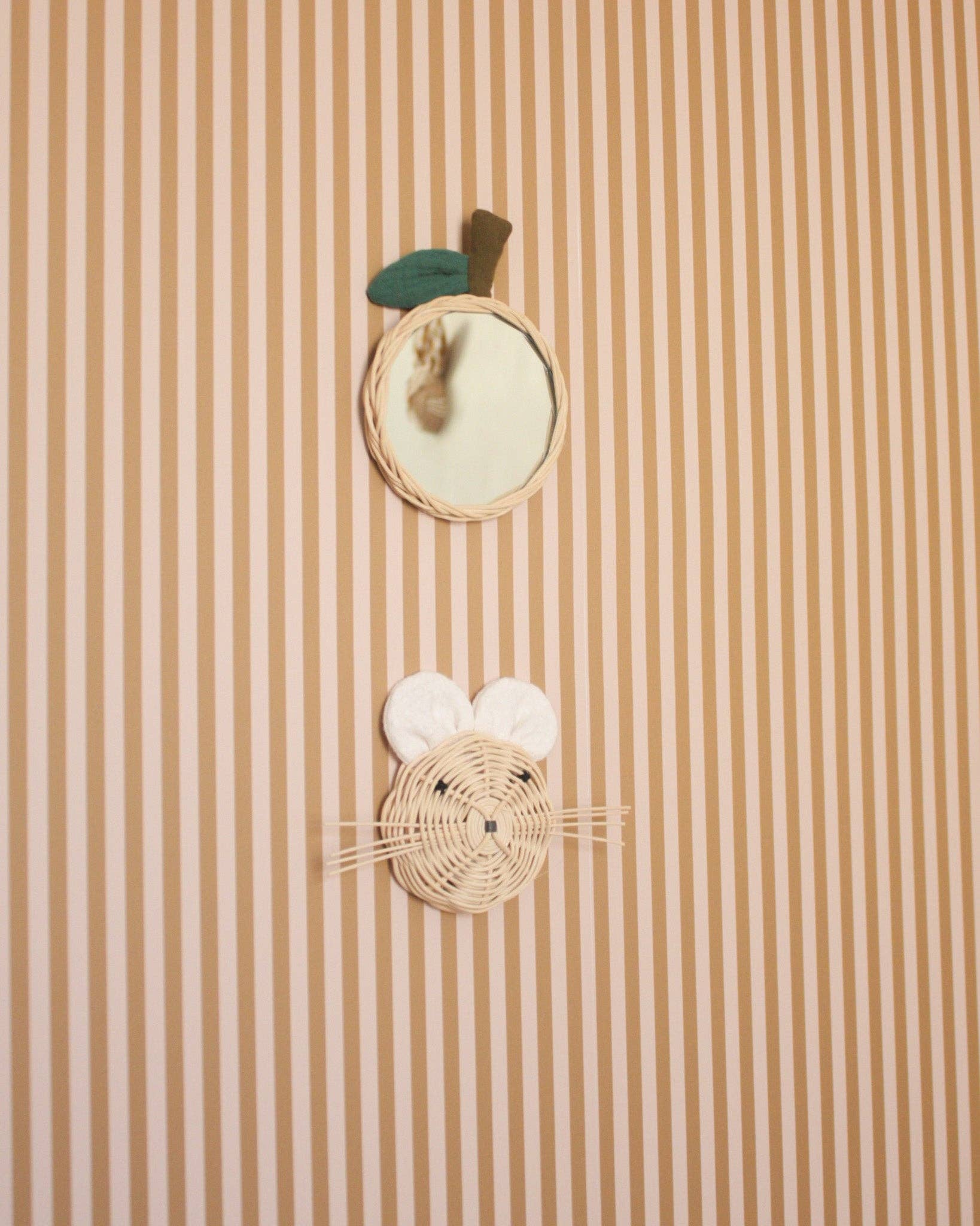 Add a touch of softness and elegance to your interior with these rattan animal trophies, perfect for hanging solo or in a wall composition! Their little whiskers and delicately patterned ears will charm both young and old alike. The trophies are presented and protected in a lovely "house" packaging. Designed to be reused, it is made by a local company located a few kilometers from the workshop. Also discover our version with patterned ears and create a unique decor by combining our different trophies. These creations harmonize perfectly with our mirrors and flowers for a poetic and personalized decor. Made in France ☼ These decorations are crafted without glue or varnish. The rattan is woven in our workshop, allowing all the small details of these adorable trophies to be maintained and embroidered.