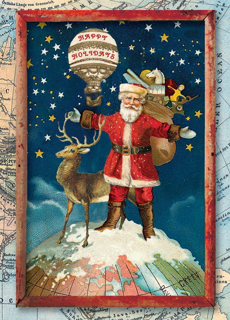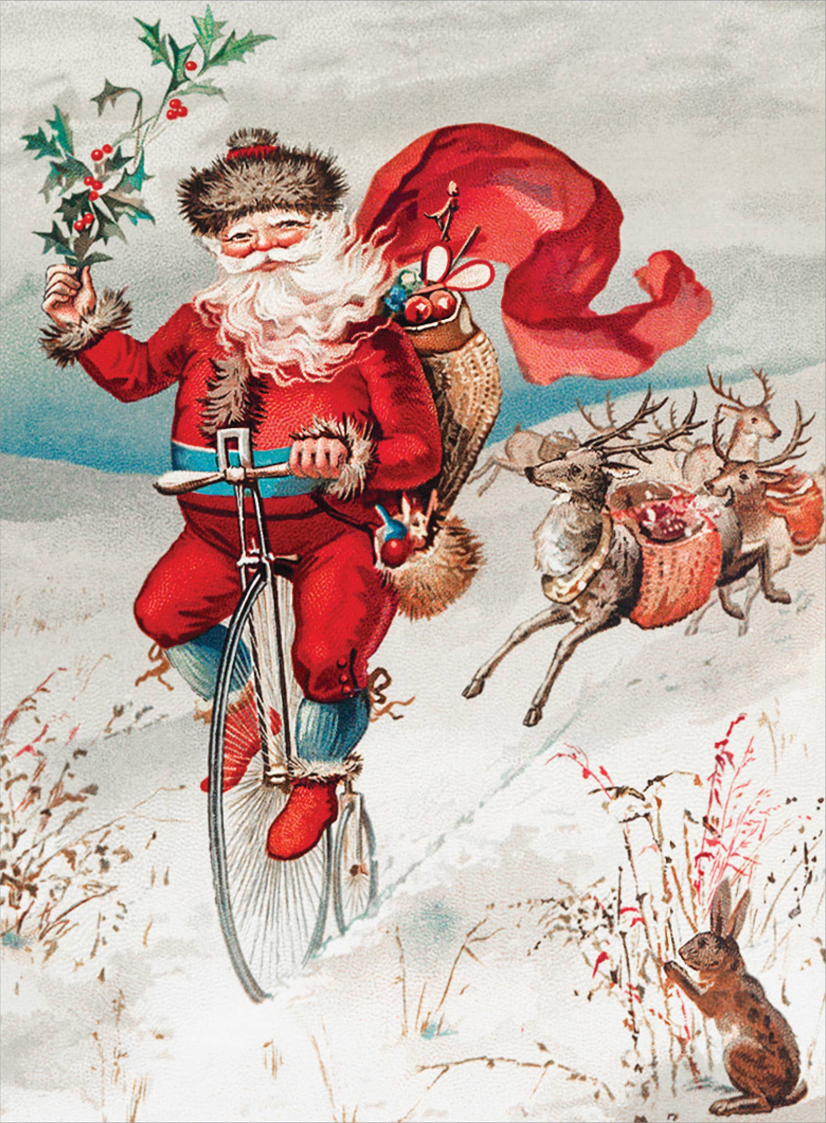 Santa Claus on a Penny Farthing, early 1900s Christmas Card
