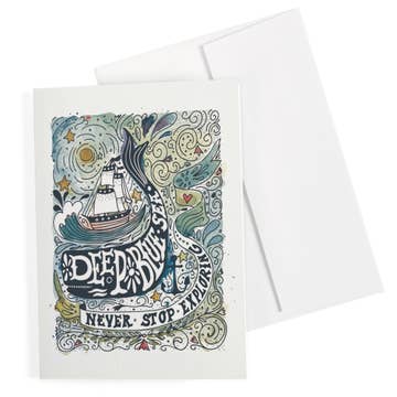 "You were not built for safe harbors. You were built for the challenge of the high seas.” Folded greeting card with blank inside to write a personal message. Gray letterpress. Details: * A2 (4.25x5.5) 110 lb Cotton, Tree-Free Folded Card | Gray Letterpress Ink * Pale Grey Eco-Friendly Envelope | Metallic Satin Gold Foil Logo on Flap * Each card is blank inside * Each card comes in a clear sleeve made from plant-based polylactic acid (PLA) and is certified compostable * Printed and produced in Petoskey, Michigan