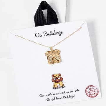 18 " in length, this vintage finish necklace features a wood disc Georgia logo pendant with a claw clasp and 3" extender. Pendant measures around 1” in diameter. This is an officially licensed product.