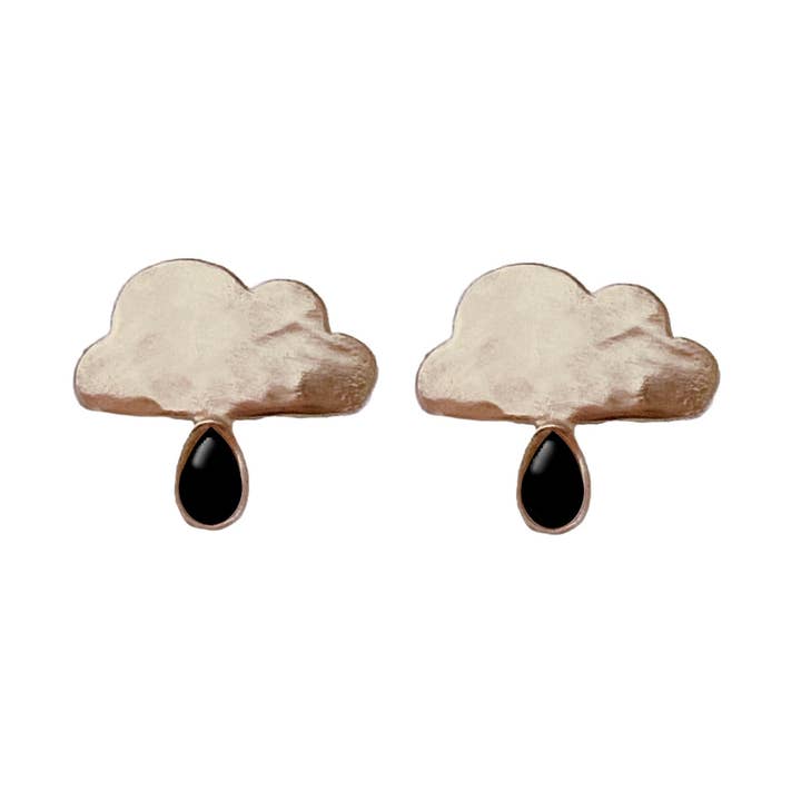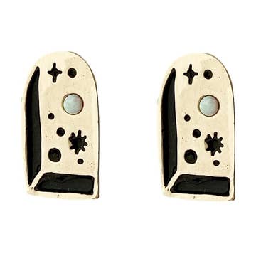Handmade in Chicago by Therese Kuempel - Brass and Black Onyx. - Also available in Solid Sterling Silver or White Bronze. - White Bronze is almost identical to Sterling Silver, making it an affordable alternative to sterling, yet still silver in color. It is a smooth, durable, non-toxic metal that is highly resistant to tarnish. - All of our metal is nickel free. - Earring Posts are 0.925 Sterling Silver. - Stones measure 3mm each.