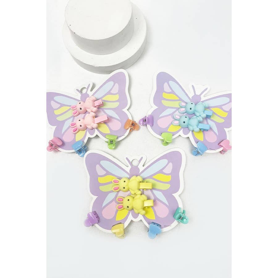 Bear and Butterfly mini Hair Clip Set -12 mini Butterfly Clips and 2 Bear Hair Clip Set in 1 card -Total 12 cards total in 1 pack
