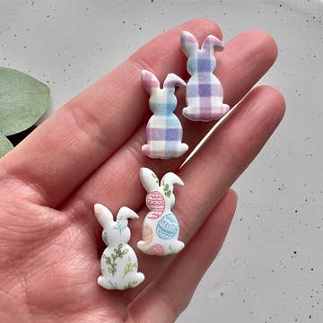 Spring Bunny Fabric Button Earrings