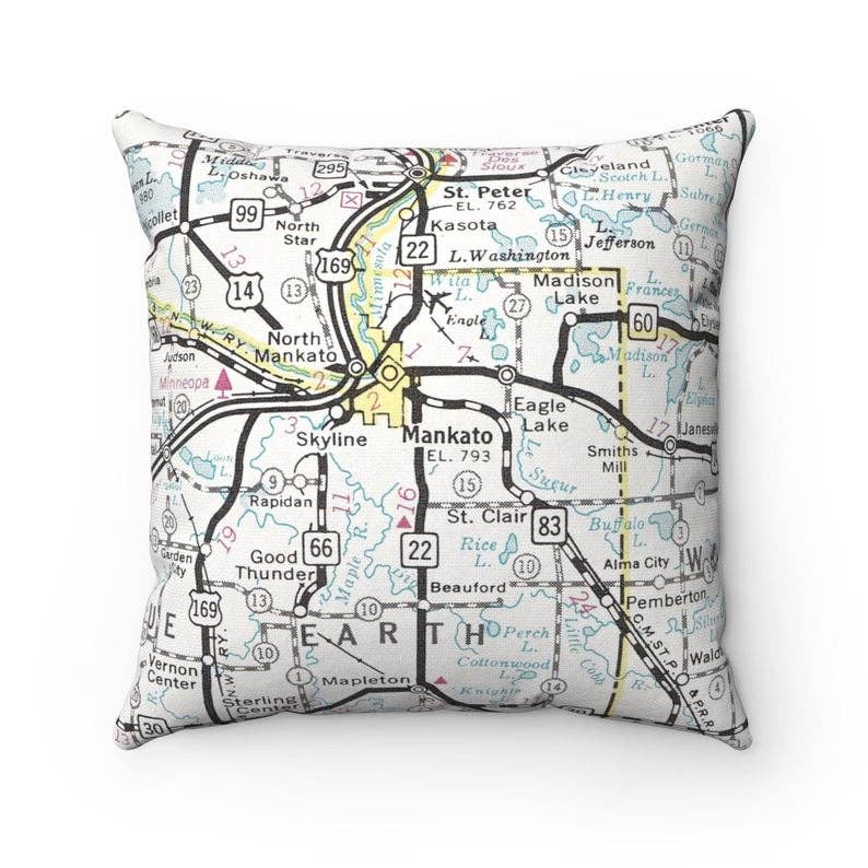 Elevate your store’s home decor selection with our 18" square vintage map throw pillow—a timeless keepsake that blends style and sentiment. Featuring a carefully selected vintage map on one side and a neutral linen-blend back, this pillow is designed to mix seamlessly with any décor. A cozy accent for beds, sofas, and reading nooks, it’s both decorative and meaningful. As seen in Country Living Magazine, Gift Shop Plus Magazine, and Seaside Retailer Magazine, this pillow is a proven favorite among customers looking for unique, high-quality gifts. Cotton/polyester/linen blend for a soft, durable finish Invisible zipper for a seamless look Hand wash only; care instructions included Available with or without insert to meet customer preferences Each pillow is designed and printed by hand by our all-female team. *** Vintage map pillow Custom map throw pillow Personalized throw pillow Decorative map pillow Custom location pillow Travel-themed pillow Unique sofa pillow