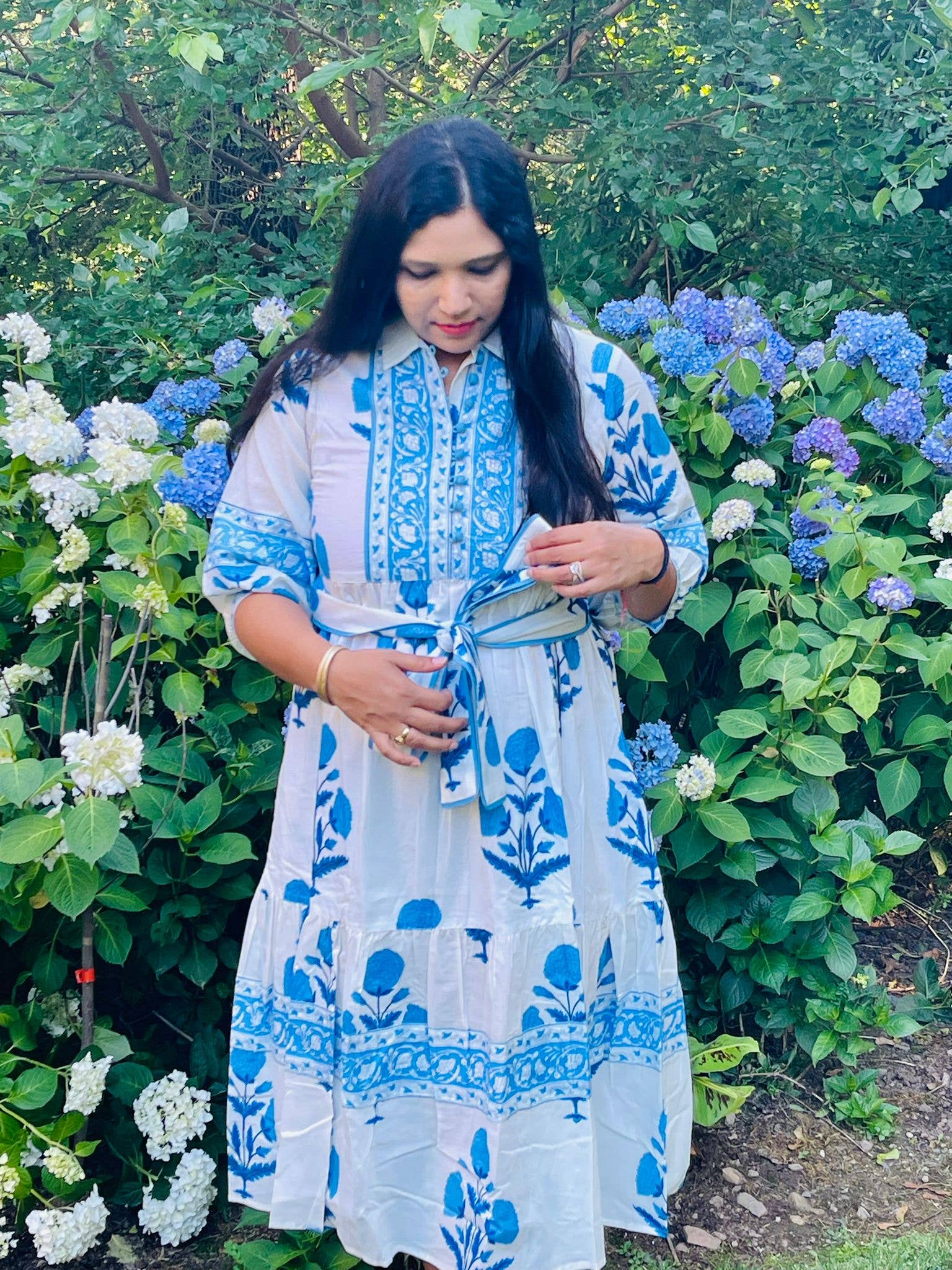 Welcome to AMRANIS. Our Indraneel Block Printed Maxi Dress is a beautiful blend of India's rich textile heritage and contemporary design. Created in collaboration with skilled artisans in Rajasthan, this women's dress is not just a product, but a preservation of legacy. Its unique prints redefine tradition, offering a global flair and timeless charm. Each AMRANIS dress is a testament to our commitment to exuberance, functionality, and precision craftsmanship. Embrace the AMRANIS journey today.