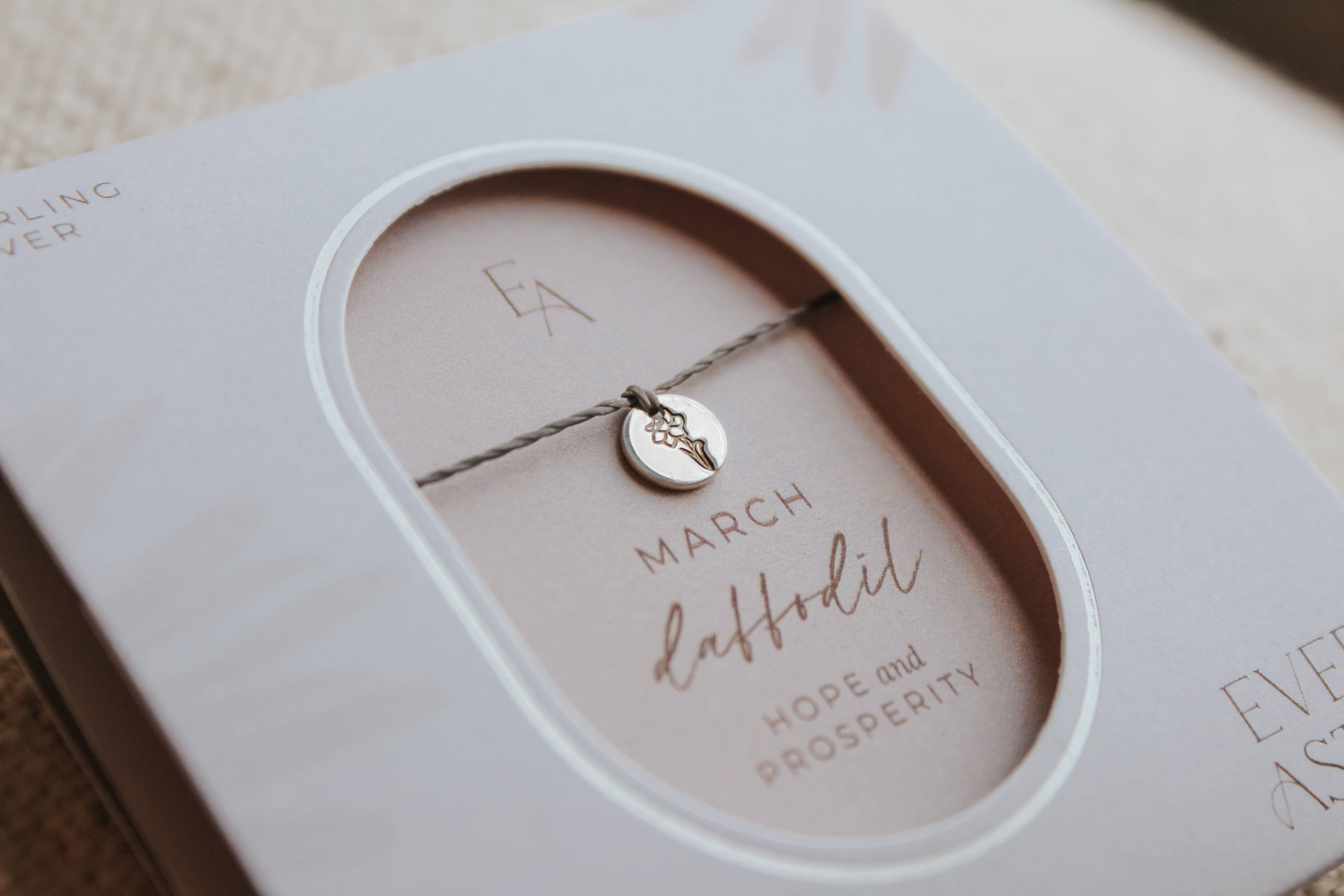 The marigold is the flower that represents those born in October. Marigolds are the flower of passion and creativity. Product Details Charm comes in either gold-filled or sterling silver Hand stamped Charm measures ¼ inches in diameter The corded rope is a gray poly cord that is strong, durable, and can get wet without damage Adjustable closure (one size fits most) Ever Aster inspires meaningful connections by spreading hope and simplicity through its jewelry. These pieces are the perfect gift to convey a heartfelt message to your loved one that shines with thoughtfulness, kindness, and gratitude. We hope you find as much joy in wearing your jewelry as Kimberly Newcomb, the owner of Ever Aster, did when she created it.