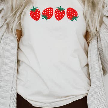 Wholesale Cherry graphic printing with rhinestone trim basic t shirt