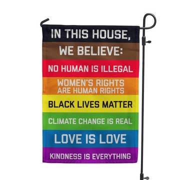 Looking for a gifts for that newly out transgender kid in your family? Look no further! This beautiful lightweight Trans Rights outdoor flag reads "Trans Rights Are Human Rights" in bold white typeface surrounded by illustrated flowers over the bright blue, white, an pink colors of the transgender pride flag. DETAILS: • Weatherproof and fade-resistant fabric • Metal grommets on the left side • Design printed on a single side • Flagpole not included • Dimensions: 36″ x 24″ x 0.2″ (91.4 x 61 x 0.5 cm) • Weight: 4 oz (113.4 g) Gentle reminder: making your support for LGBTQ visible saves lives. Art copyright Rae Senarighi (Transpainter) Shopping this tiny mom & pop shop supports: + transgender-owned business and a trans artist + a woman-owned business + a queer family in the midwestern USA + a very, very small family business