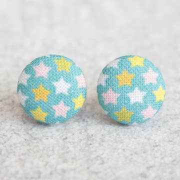 Tiny Stars, Fabric Covered Button Earrings