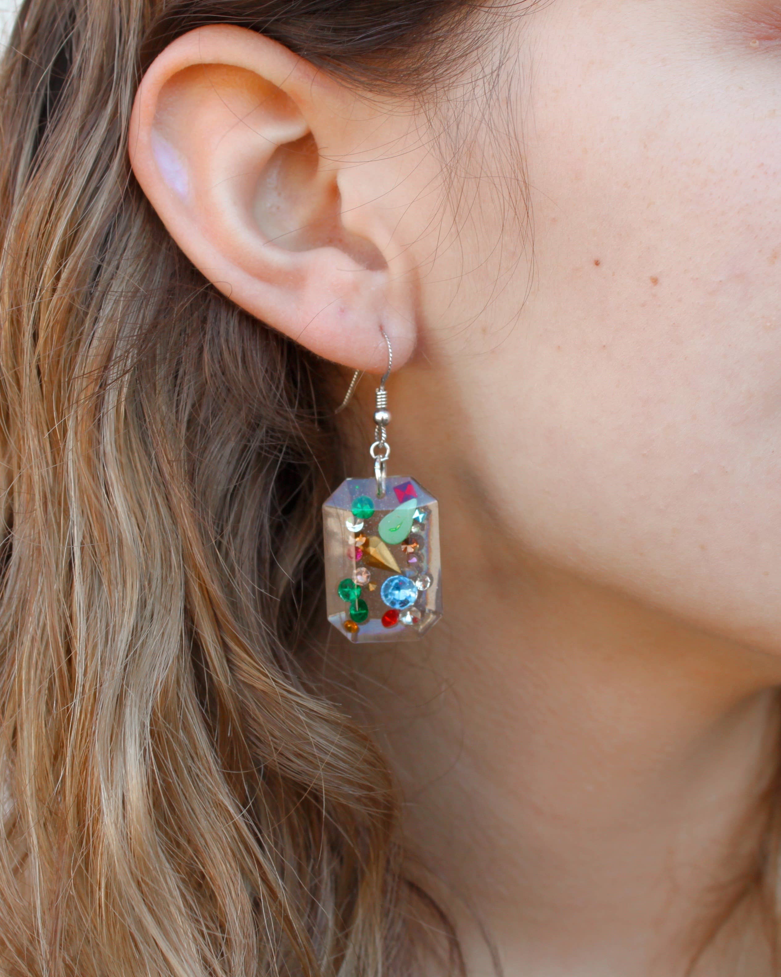 Are you ready to party? You will be with a pair of earrings from the Party Girl Collection! Whether you are celebrating a milestone or a Monday, always find reasons to celebrate and dress for the occasion with these earrings! Handmade rectangular confetti filled resin charms. Earrings measure 1.75" on gold-filled wires. All jewelry is made to order, so each piece is unique for you! Expect colors and glitter placement to vary. To keep your pieces looking their best, be sure to put on your accessories after you have applied all cosmetics and styling products. The chemicals can negatively affect pieces. Wipe your pieces off with a 100% cotton or microfiber cloth when you take them off, to keep them fresh and clean!
