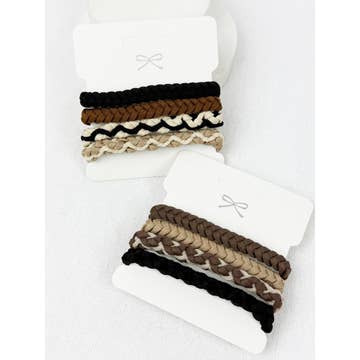 Boho Style Elastic Ponytail Hair Tie -Hair Ties for Women, Hair Tie Bracelets, Brown and Black Theme, No Damage Hair Elastics, Comfortable for Thick or Thin Hair, Boho Hair Ties for Ponytail Holders -4 pcs Hair Tie per cards and has 12 cards total.