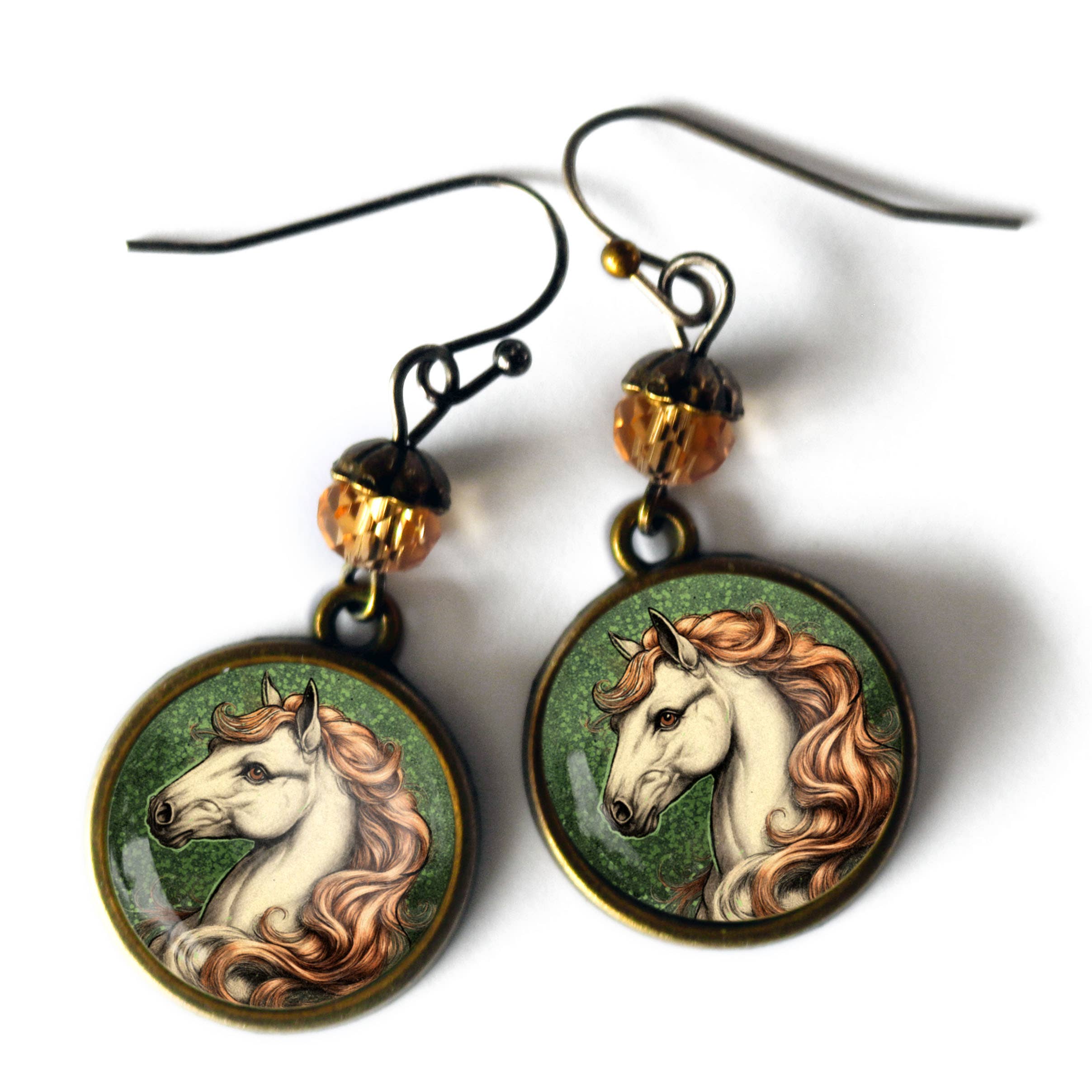 Running horse earring w/ stone on surgical steel earwire. Natural harmony earring.
