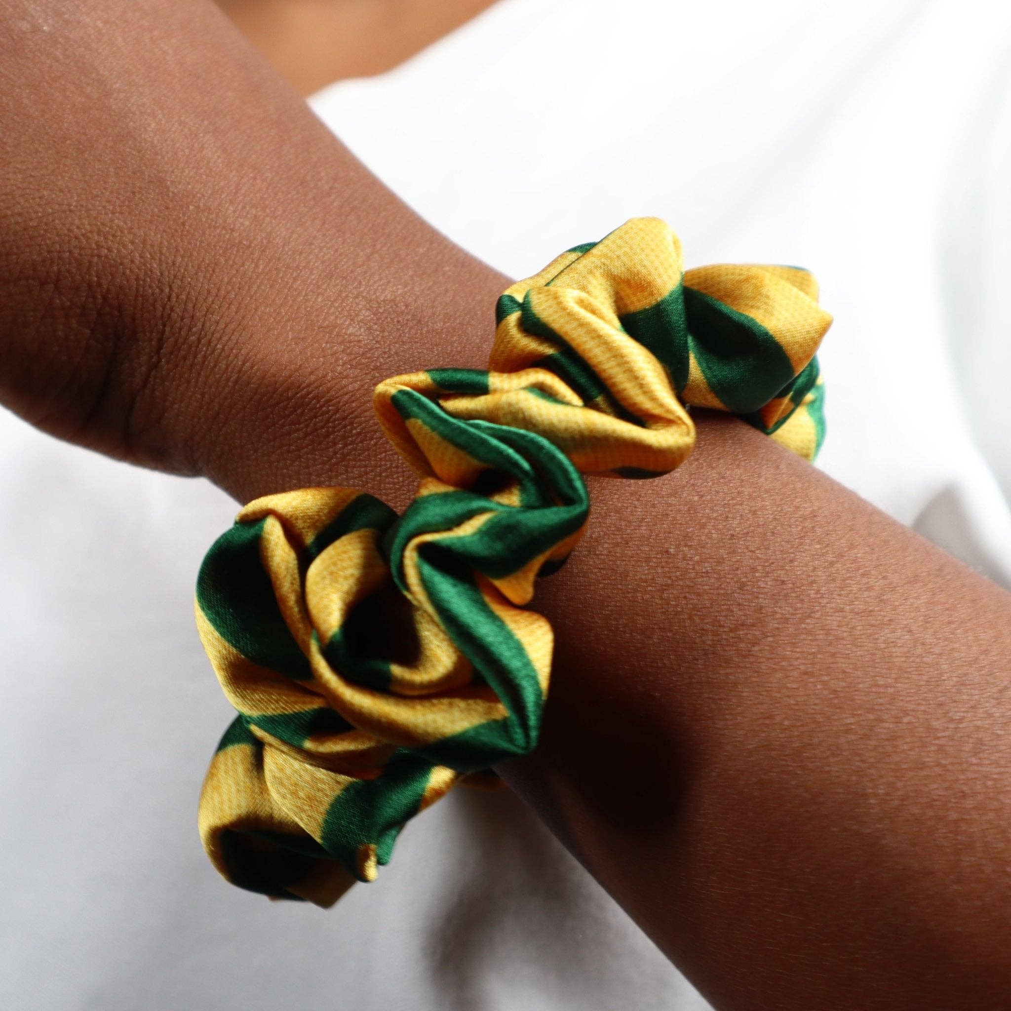 The Obi headband in wax with a black satin interior, to tie in one minute. Obi means: heart (Ibo-Nigeria). The satin helps retain hair moisture, prevents frizz, regulates sebum, and limits split ends. It is adjustable for all head sizes. The attachment is easy and headache-free thanks to wires inserted inside. Have fun tying it as you wish! Tutorials are here. Product details: • Colors: blue, green, black, yellow • One size • Composition: 100% cotton fabric (wax) and 100% polyester lining (satin) • Handmade and made in France.