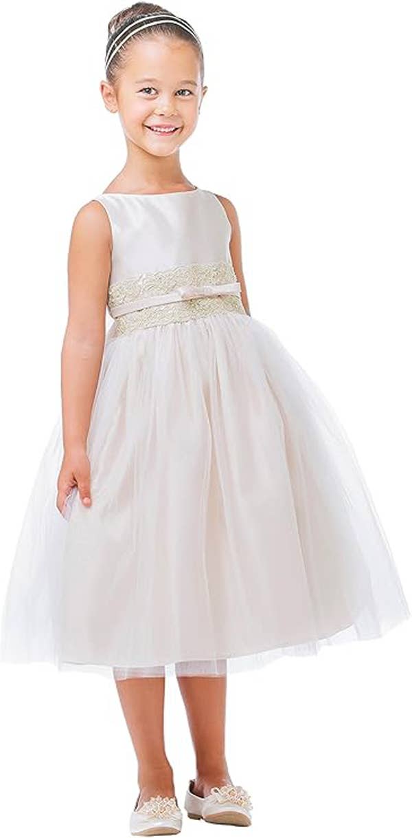 Sleeveless Lace Sequin V Back & Bow Girls Dress