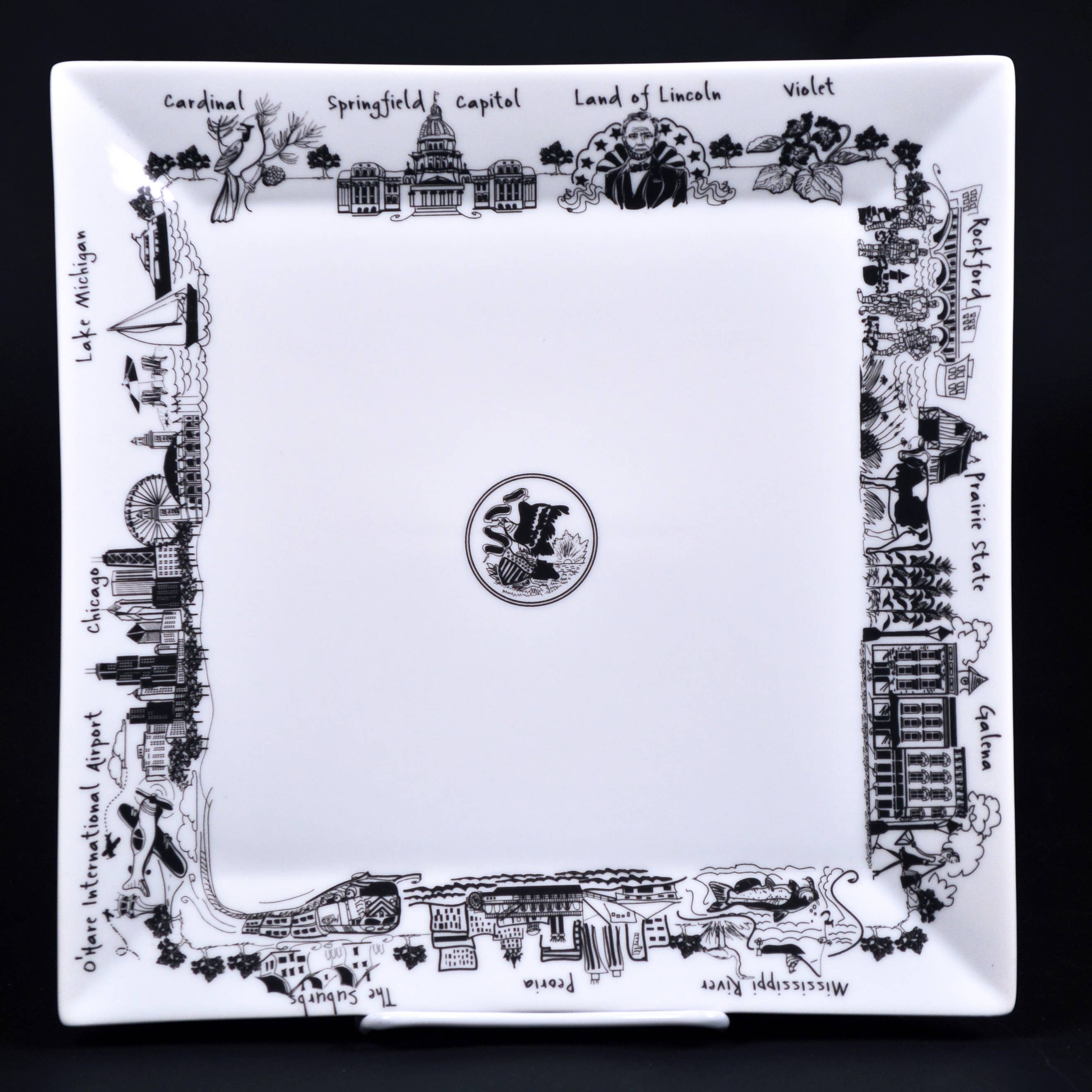 This serving platter features our Chicago flag design, perfect for any table! Fantastic for serving or cheese/charcuterie platters, they look equally fabulous on your table or hanging on the wall. These make great wedding and housewarming gifts. * Wispy white and powder blue glasses, printed in red glass enamel * Approx. 7 1/2 x 15" x about 1 1/2" at the corners * Dishwasher safe * Handmade in the USA Kiku Handmade platters are screen printed, kiln formed glass made by artist Laurie Freivogel in her Oak Park studio. She hand prints each piece of colorful sheet glass with fine glass enamels, then fuses in a kiln in multiple firings. Designs are permanently fused into the glass. This design is part of a series and has other matching housewares!