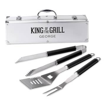 Give your grill master a gift they'll love! This barbeque grill set comes in masculine cardboard book box with a smokey recipe and finger licking' tools! · Material: Stainless Steel/Wood · Size: 9.75" W x 18.25" H x 1.25" D · Care Instructions: Hand Wash Only
