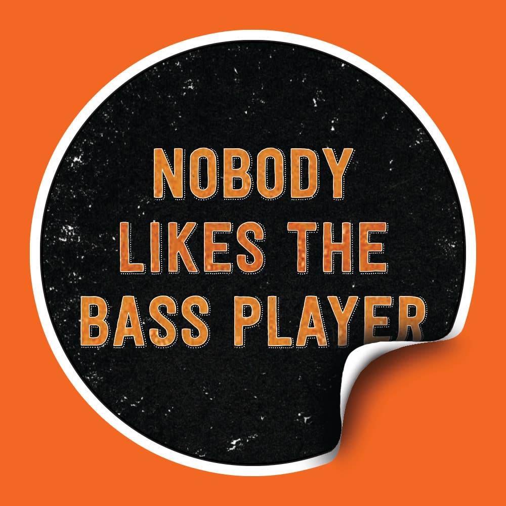 1.25" Nobody Likes The Bass Player Button! Made in Canada. Buttons take 5-10 days to process and ship. • No minimum per style • packaged loose • Made in Canada