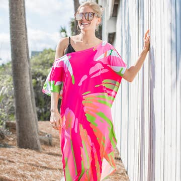 Sunset Palms Modal Kaftan 100% Modal Dry Clean Only One Size Length 37" Chest 32" Waist 40" Hip 40"